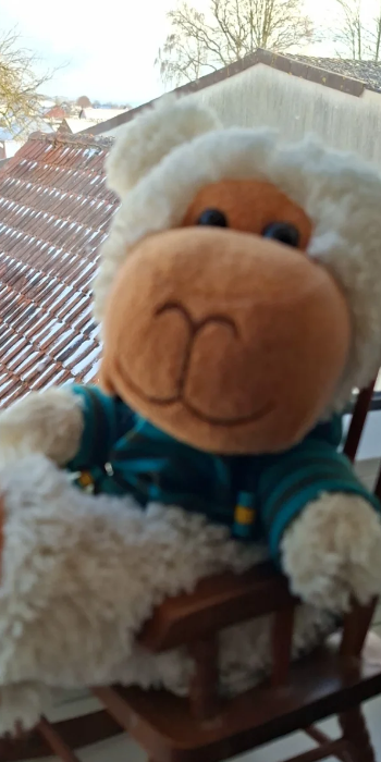 Guten Morgen ihr Lieben. Ich bin heute morgen schon eine Runde durch den Schnee gestapft. Besser gesagt im Rucksack meiner Spielerin. Wir haben unterwegs ein paar schöne Winterfotos gemacht. Schön war es. Jetzt habe ich es mir im Schaukelstuhl gemütlich gemacht und faulenze in bisschen.