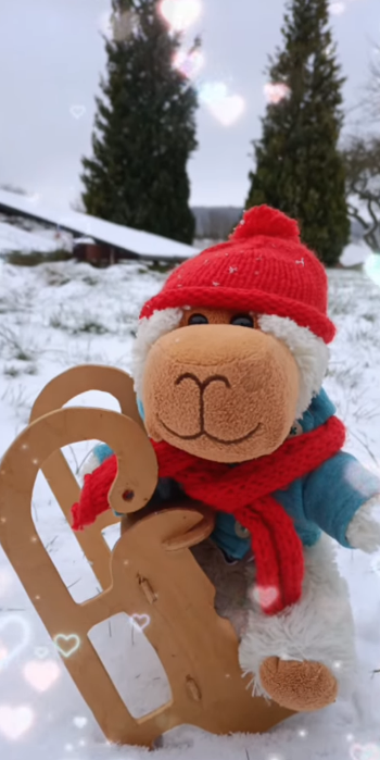 Heute Nacht hat es geschneit. Gleich mal raus ein bisschen Schlitten fahren.