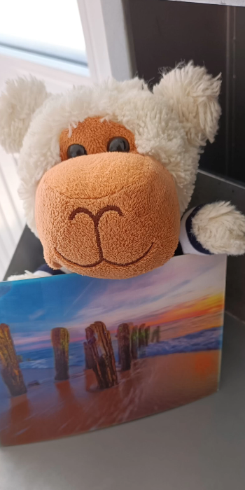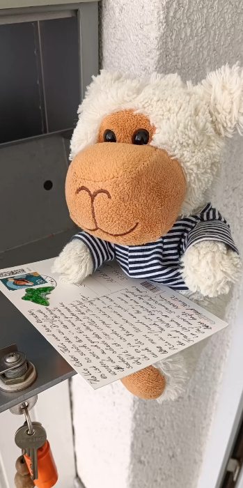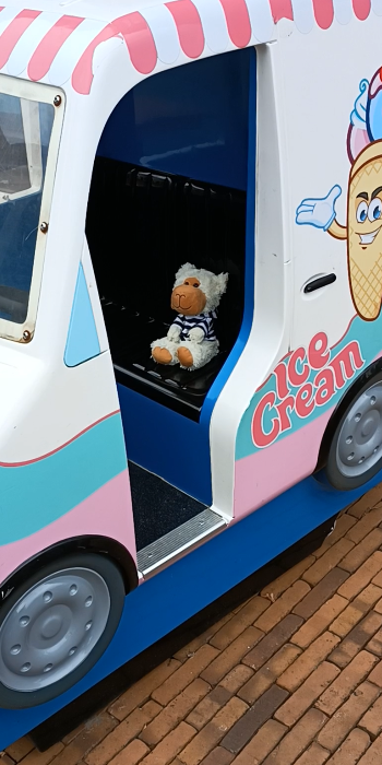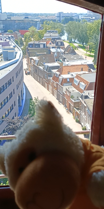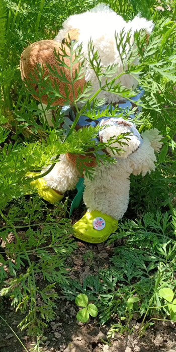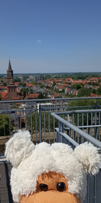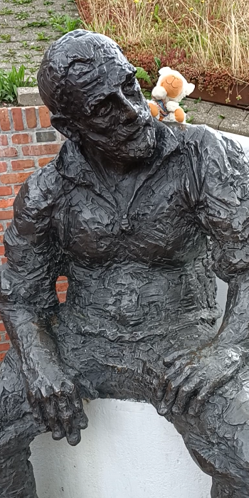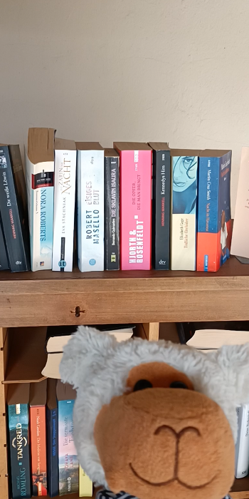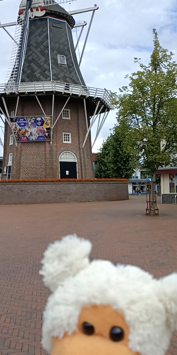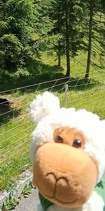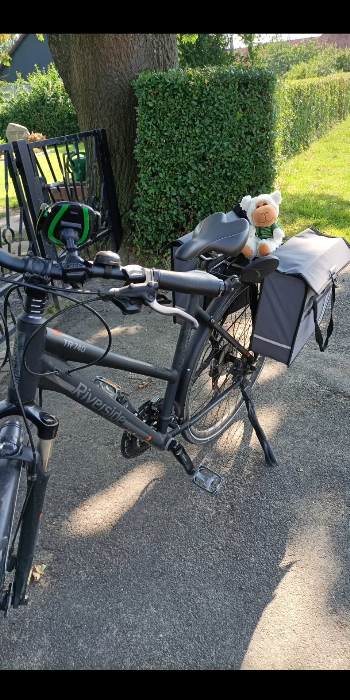 Heute bin ich mit der Spielerin zum Einkaufen geradelt. Wir haben ein bisschen viel eingekauft und so mußte ich auf dem Rückweg auf den Packtaschen sitzen, anstatt in den Taschen. Mir hat es aber Spaß gemacht, denn so habe ich besser gucken können. Am Friedhof haben wir kurz gestoppt,denn dort gibt es schöne schattige Plätze unter den Bäumen.