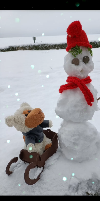 und der Schnee ist auch da. Schneemann bauen macht Spaß. -
