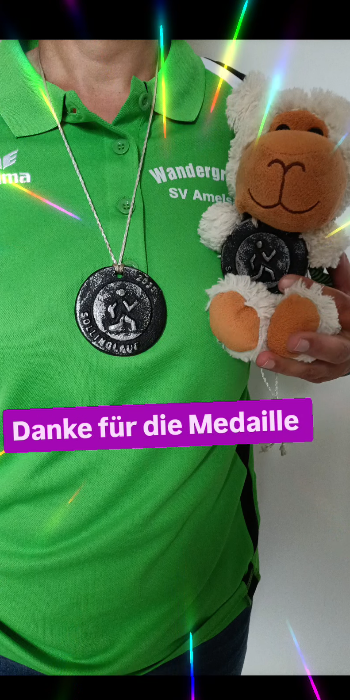 Ich bin mit meiner Spielerin und meinem Kameramann gewandert und habe eine Medaille bekommen – und das obwohl ich nur im Rucksack der Spielerin mitgewandert bin 🙂