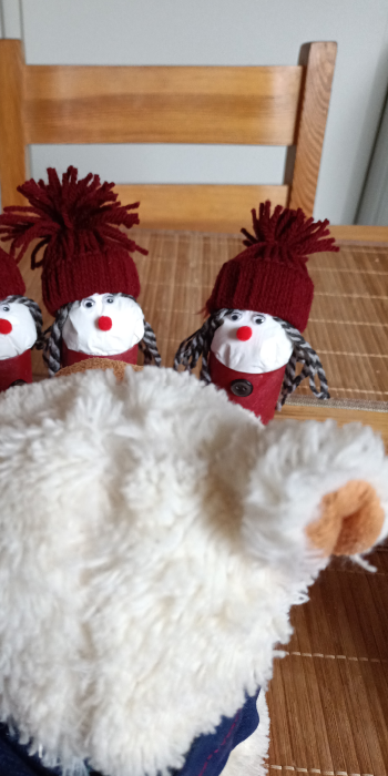 Heute habe ich mit der Spielerin Weihnachtspuppen gebastelt.