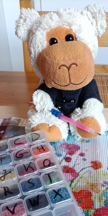 Eine schöne Diamond-Painting Karte von Karlchen habe ich schon fertig.
