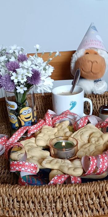gleich gibt es Frühstück ans Bett und später dann Kuchen für mich 🙂 -