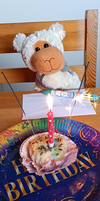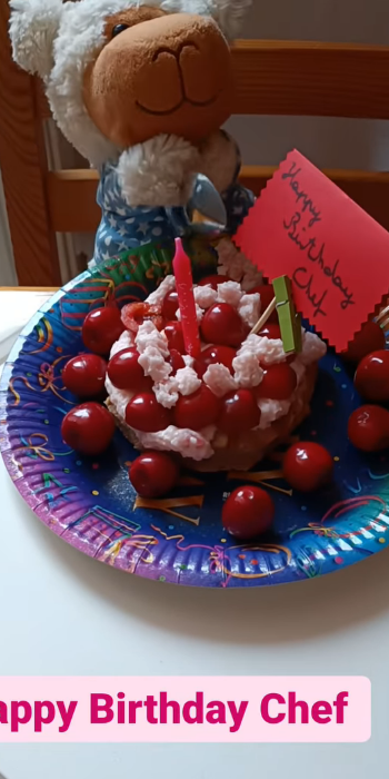 Eine leckere Torte habe ich da bekommen. Und heute Nachmittag steigt die Geburtstagsparty -