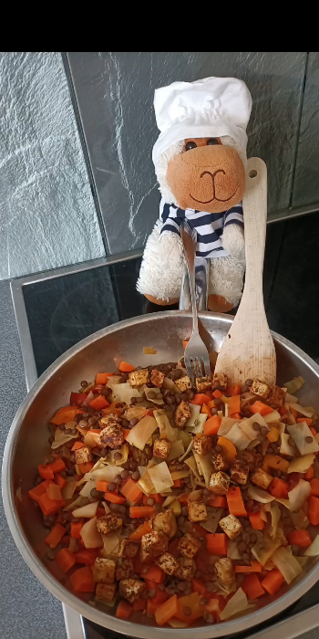 Buntes Gemüse mit Linsen und Tofu, man nehme :