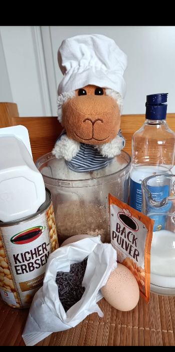 ein paar SchokoflockenDie Kichererbsen fein pürieren. Danach die restlichen Zutaten dazugeben und gut verrühren. Alles in eine Backform geben und 50 Minuten bei 200 Grad backen.