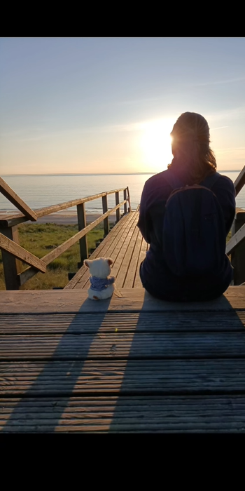 Tschüss Sylt. Schön war der Urlaub auf der Insel. Es gab ganz viel Sonnenschein, Sand, Muscheln und salziges Wasser. Ich habe gesehen wie die Sonne abends ins Meer gefallen ist, toll.